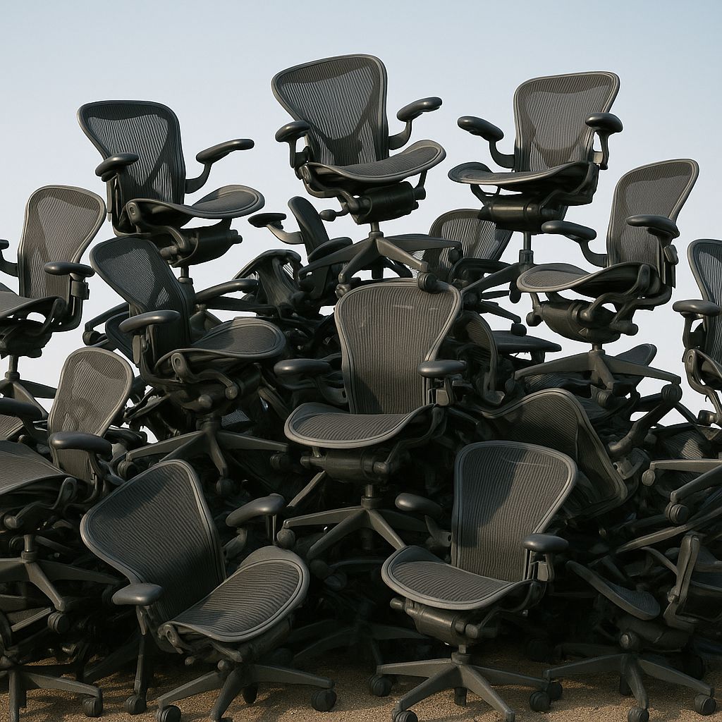 At some point in 2001, the Chapters Online HR office was stacked full with a jumbled collage of Herman Miller Aeron Chairs.
